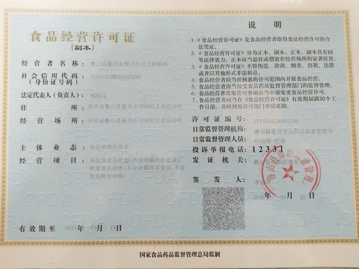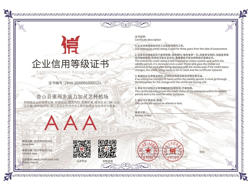 河南省康力加種植有限公司創建于2016年,位于河南省平頂山市魯山縣城以西伏牛山之側,八百里伏牛山生長了枝葉繁茂的椴木林,山清水秀,光照充足,溫度適宜,更適合靈芝的生長和集約化培植。康力加靈芝種植基地引進仿野生優良菌種,培育出了優質的靈芝孢子粉;其靈芝孢子粉各項生化指標均達到或超過國家標準,基地規模不斷擴大,保證了靈芝孢子粉的國內外客戶需求。產品不但銷到遼寧、吉林、黑龍江、新疆、安徽等,還遠銷香港、新加坡等海外市場。