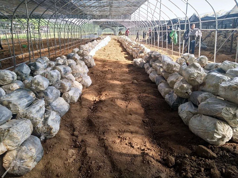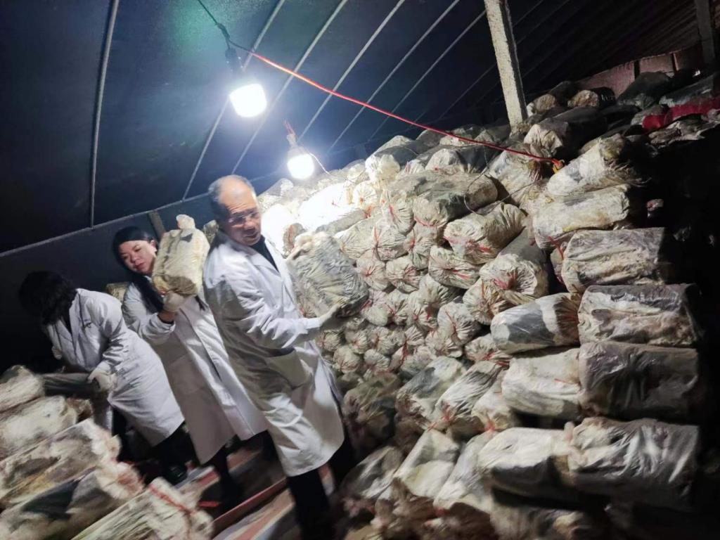 • 2023年靈芝種植料翻垛,防止椴木靈芝料發熱燒壞菌絲